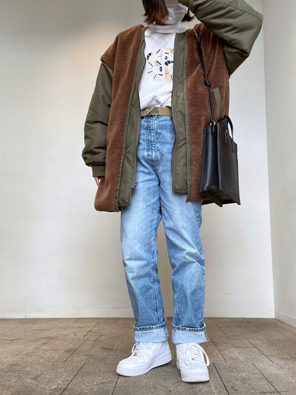 ちぃのデニムパンツ「ハイウェストストレートジーンズ」を使ったコーディネート