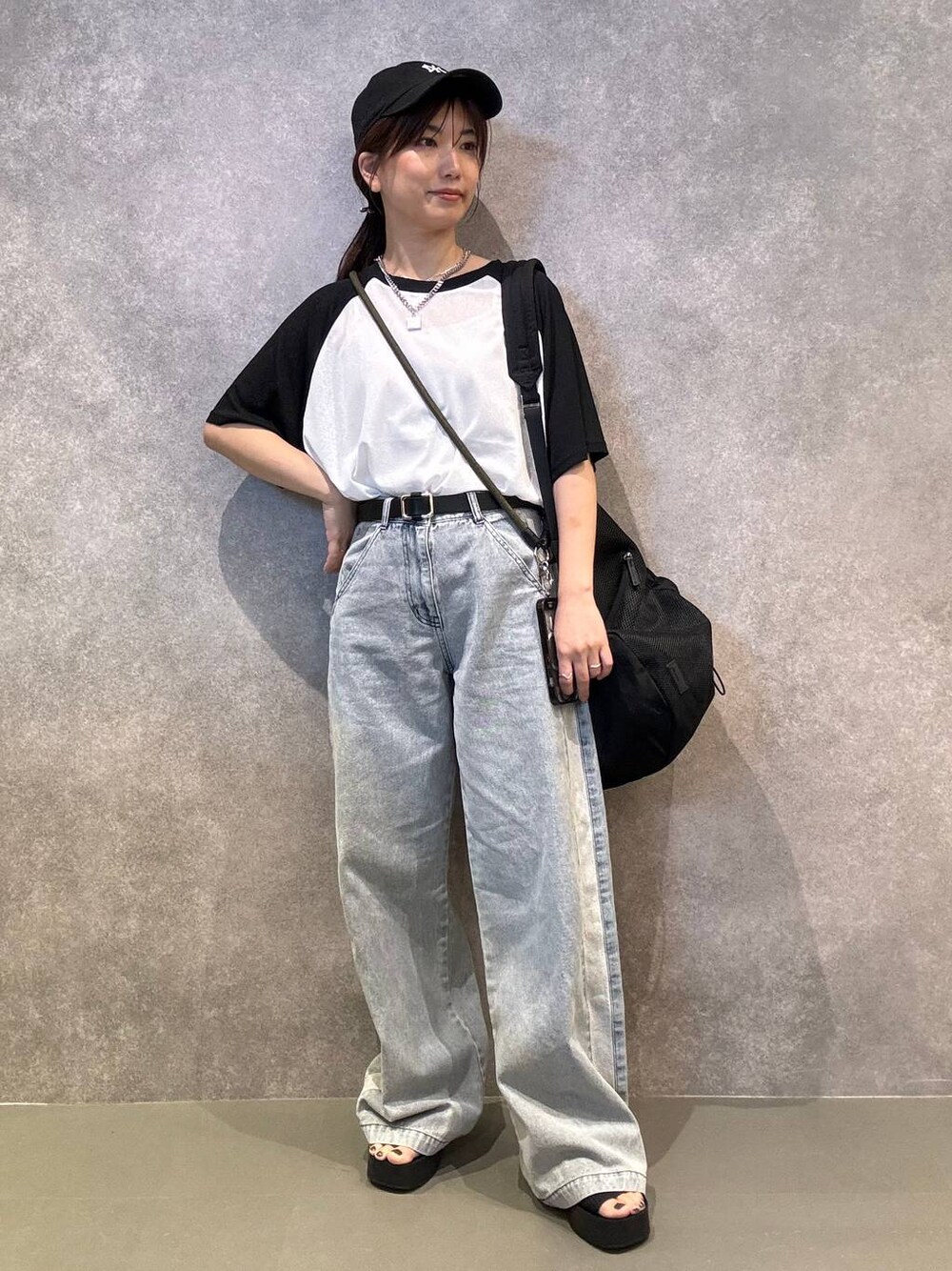 ⭐各アイテムのおすすめポイント  ̄ ̄ ̄ ̄ ̄ ̄ ̄ ̄ ̄ ̄ ̄ ̄ ̄ ̄ ̄ ̄ ̄ 【トップス】 程よいシアー感がちょうど良い二の腕も隠れるラグランTシャツです‼︎ 【ボトムス】 サイドのラインがお洒落で、生地の暑さも夏場に履いてもちょうど良い生地感のデニムパンツです✨ 股下が長めなので、低身長の私は厚底サンダルで合わせてみました。 Instagramはこちら▶︎ (スタイリングや子どもとの日常を公開してます!)