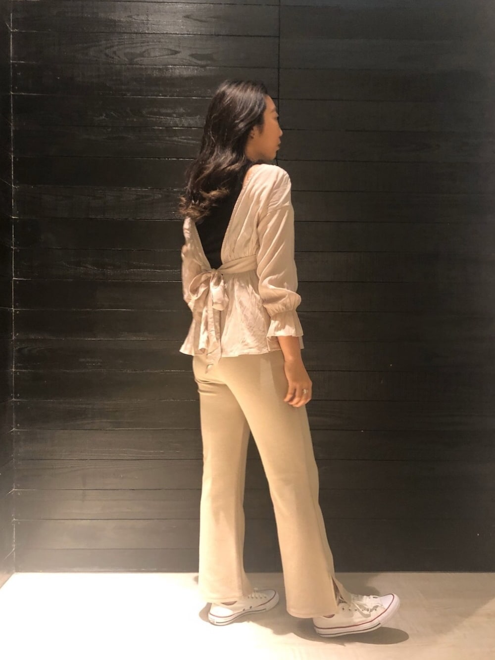 このトップスはリバーシブルで使えるのでコーディネートに合わせて前後ろ使えるのが魅力的です☺︎
