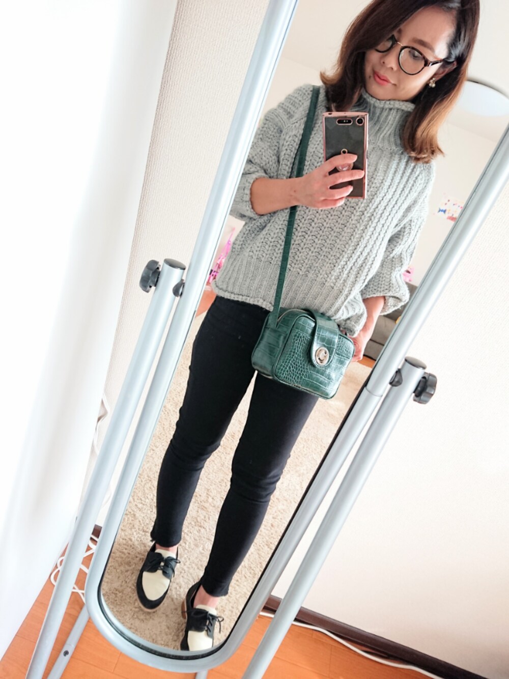 休日shoppingコーデ♪ H&Mのざっくりニットかなりお気に入り💕 色ちがいで欲しくなった!!!