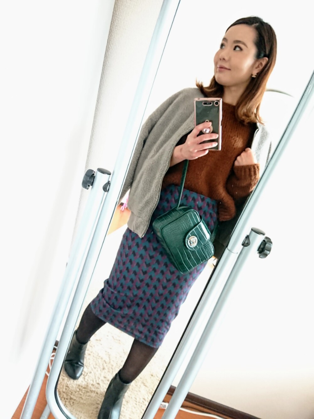 女子会昼飲みコーデ(*^^*)♪ お昼からワイン飲んで酔っぱらって、ご機嫌です💓 いつもより少しキレイめに、タイトスカートとショートブーツで✨ 気づけば、全身ほぼZARA。 ボアJKはリバーシブルだよ😁