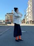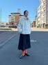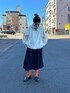 Aラインスカートをアノラックパーカーと合わせたアウトドアスタイルにしました! ラフ感を出しつつ、足元はローファーとビビッドカラーで締め、ポイントにしました!