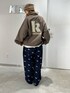 popなデザインアイテムでスタイリングしました!! 柄を2種類使っておりますが、 シンプルなアイテムを挟むと柄同士がより引き立ちアクセントになります〜!