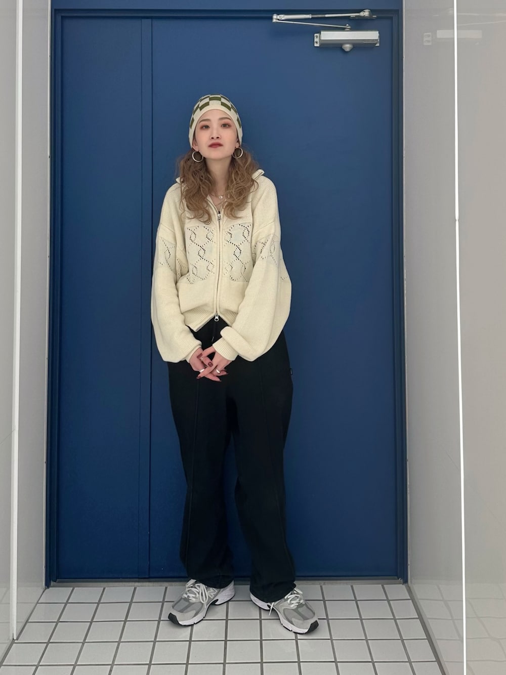 ニットをコンパクトに、 パンツを大きめで合わせて スタイルアップを狙ったバランス感でスタイリングしました! ニットの柄がボール柄になっていて アクセントにも⚾️ women:フリーサイズ pants: Mサイズ