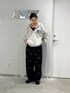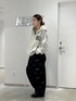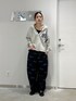 全体的にラフなサイズ感でスタイリング。 デコルテが見えるインナーで 女性らしいスタイリングにしました✨ 柄×柄ですが 落ち着いたカラーでの合わせだと 喧嘩せずに馴染みます◎!!