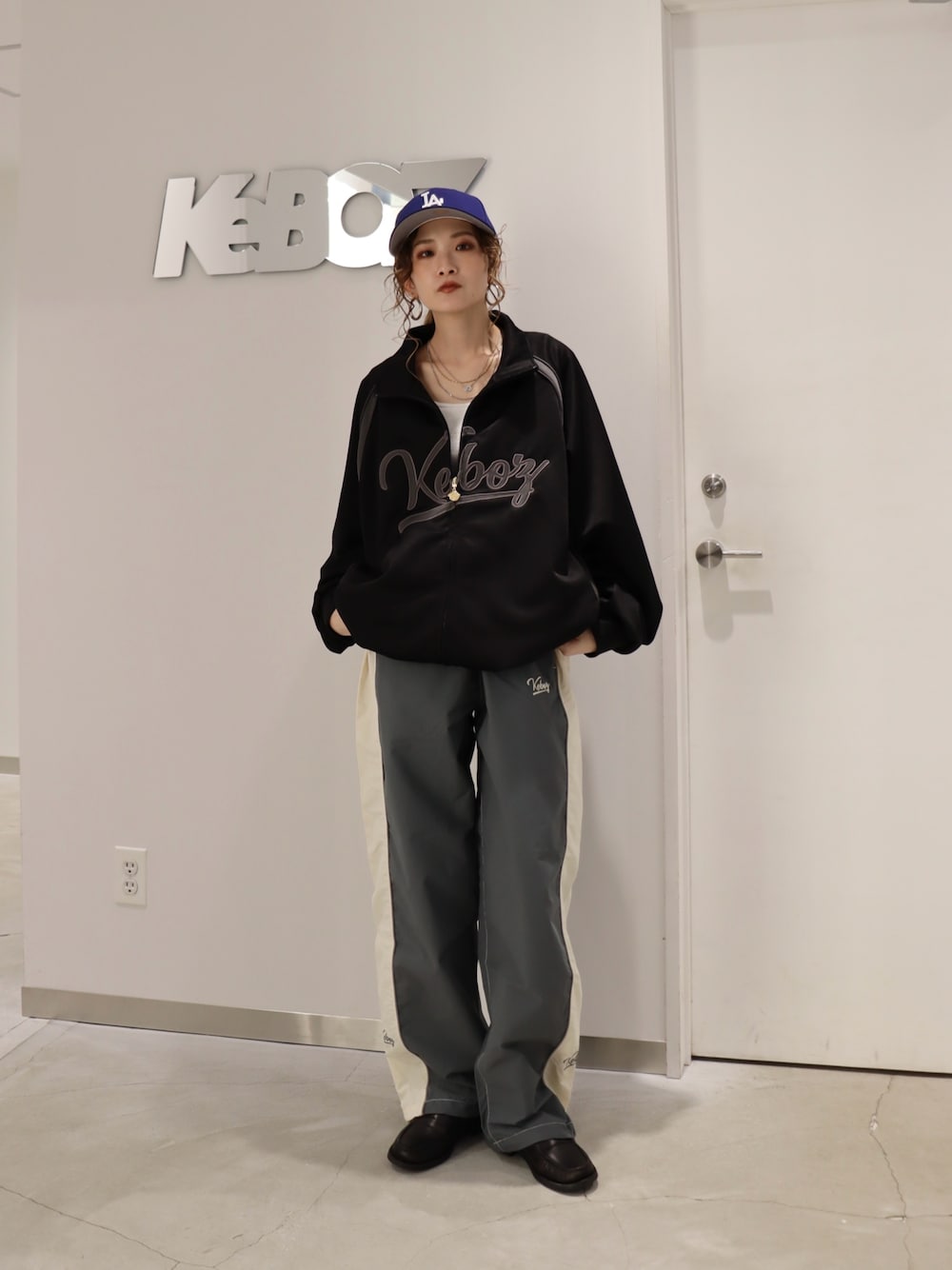 トラックジャケットのロゴをポイントに 全体トーンを落ち着いたカラーでスタイリングしました!!