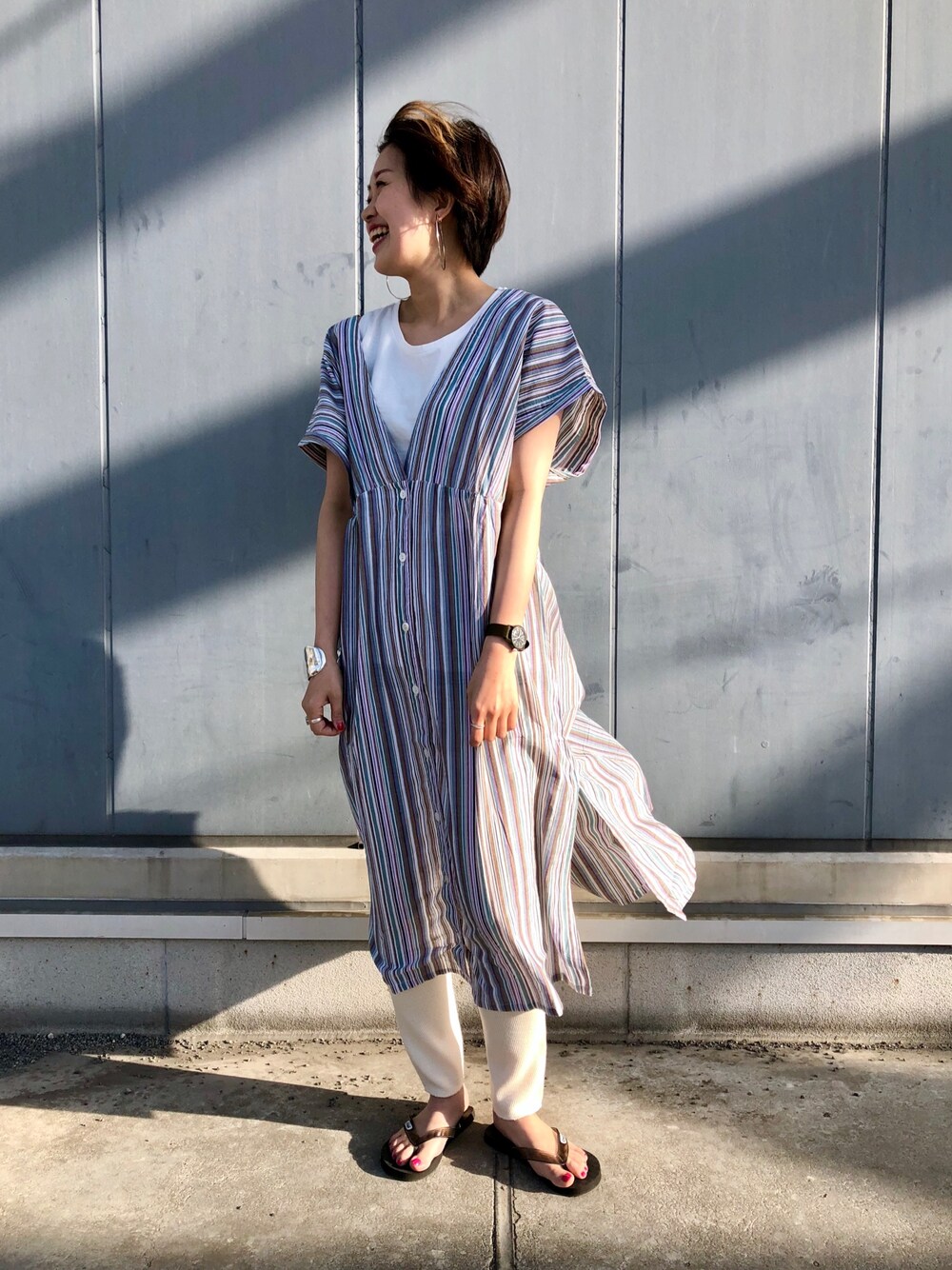 OKUBO(Whim Gazette)のワンピース「マルチストライプ2wayワンピース」を使ったコーディネート