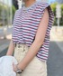 OKUBO(Whim Gazette)のTシャツ/カットソー「ボーダーボックスノースリーブTシャツ」を使ったコーディネート