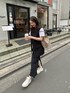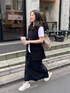 【ジレ】着用サイズ / フリーサイズ 全体的にラクな着心地。肩まわりはゆとりがあるので、少しゆったりしたトップスの上からも羽織れそうです。薄手で落ち感があるのでキレイめからカジュアルまで、幅広く合わせられます。 フレンチスリーブのようなシルエットで肩のトップが隠れるおかげで、肩まわりをスッキリと見せてくれます。インナーなしでメイン使いもしやすいですよ。 【ロゴT】coming soon... 【スカート】着用サイズ / フリーサイズ ストレッチ性が高くて驚くほど履きやすく、意外と腰回りのお肉も拾いません。腰からすとんと落ちてくれるので、変に張っている箇所がなく自信を持って履くことができます。 裏地もなく涼しいので、暑い時期にもぴったりです。 私と同じような身長(161cm)で腰回りの肉付き多めだと、フリーサイズの方がラクに履けてオススメですよ。