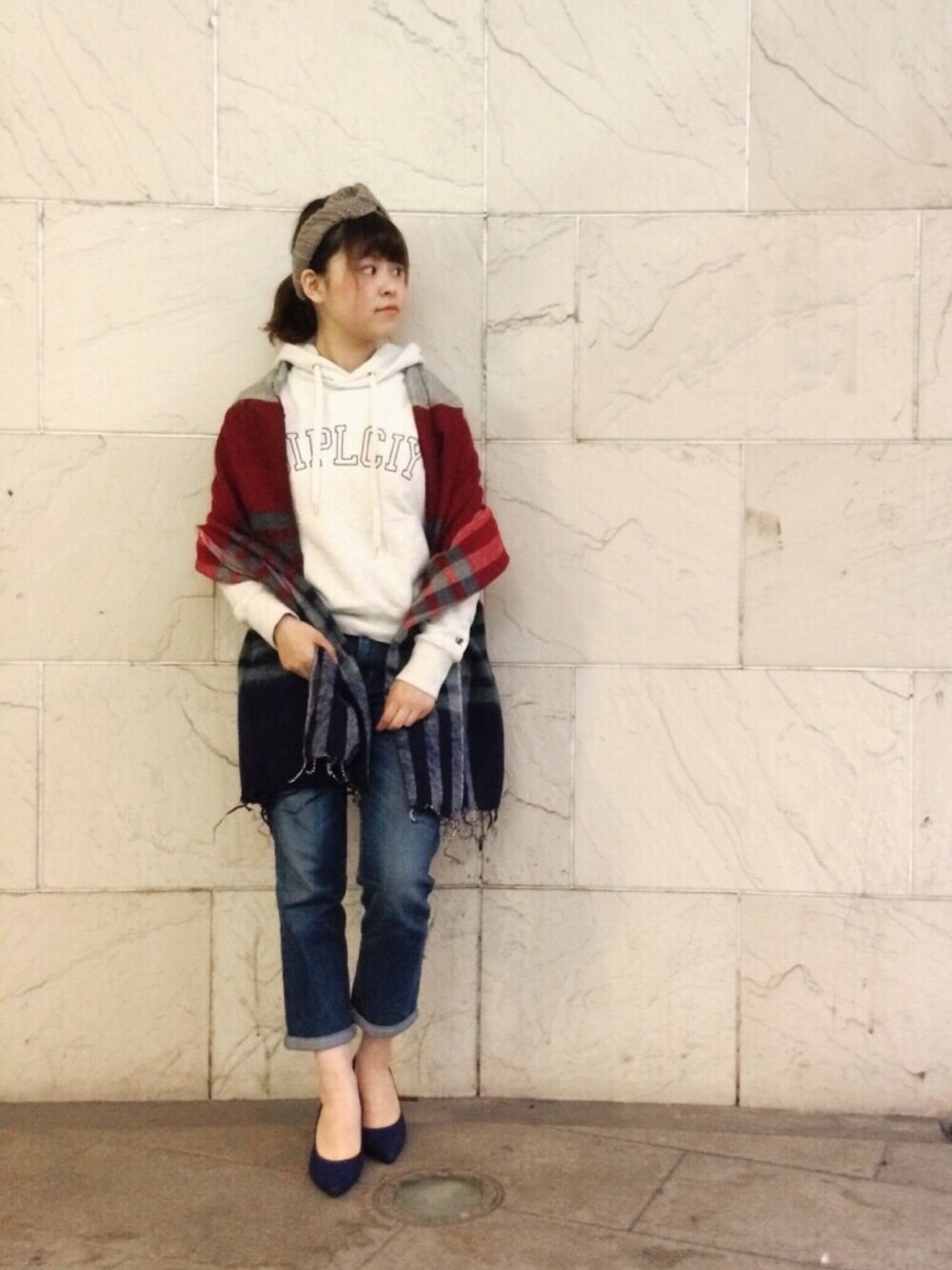 ご覧いただきありがとうございます🙇💕 なんでもないふつーーーの格好もたまにしたくなる。 ストールは柄が可愛くて一目惚れ♡♡ パーカーにデニムのシンプルコーデ👍👍 足元はパンプスでラフになりすぎないように✨