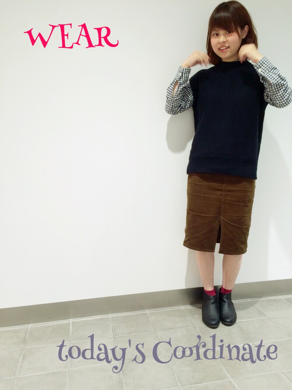 こんばんは✩ 見ていただきありがとうございます˖*♬೨̣̥ 今日はふいうちショットです(笑) #童顔 #童顔が目立つ ニットベストにシャツ👍💕 そして、このスカートやっぱり履きやすい👯✨✨ 愛犬ももちゃんの最近のお気に入りの場所です(笑) 新しいクッションの上(笑)