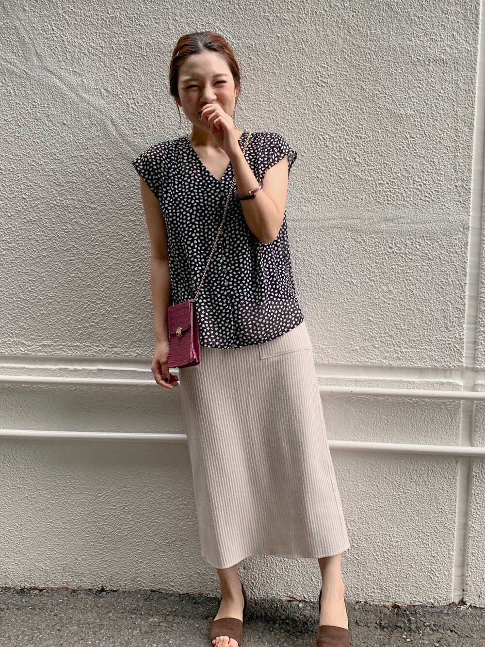 ブラウス合わせで、 少し大人っぽく! スカートはワッフル素材で、 取り入れ易い💓