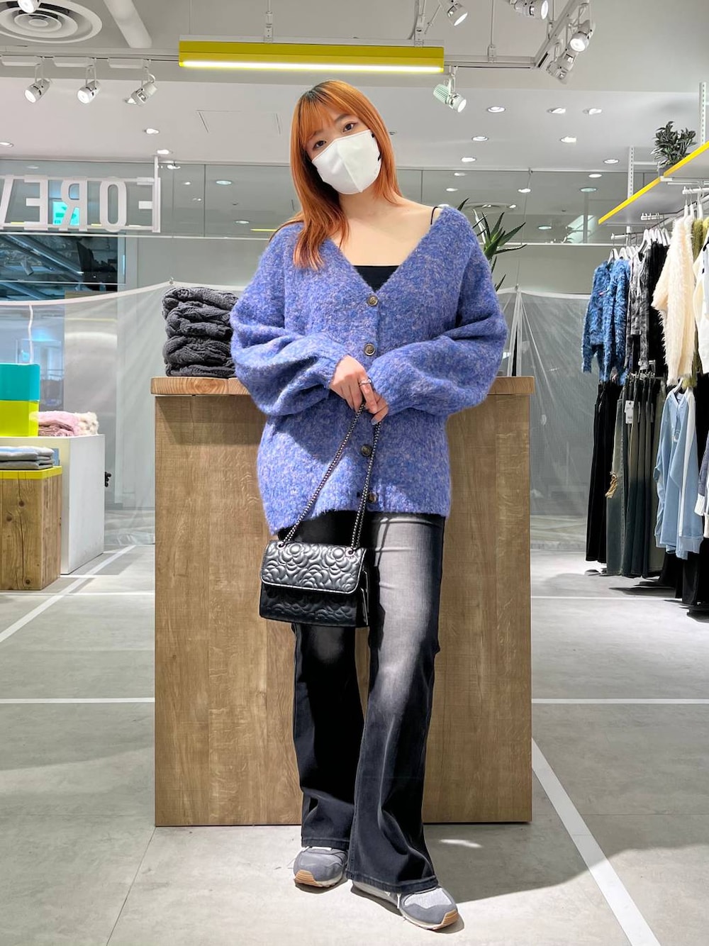 165㌢/骨格ストレート ーーーーーーーーーーーー ✿トップス✿ 大人気のブークレカーディガン! オーバーサイズとカラー好きさんにはもってこいなアイテム♡ お尻もすっぽり隠してくれるので、ヒップラインが出るパンツでも安心して着用できます✨💕 ✿ボトムス✿ フレアデニムは美脚効果抜群🆙 少しストレッチが入っているので、 タイトデニムに履き慣れていない方でもストレスなく着用していただけます🧡 ーーーーーーーーーーーー *・.。* SNS account *・.。* ▷Instagram◁ @chi_ihc28