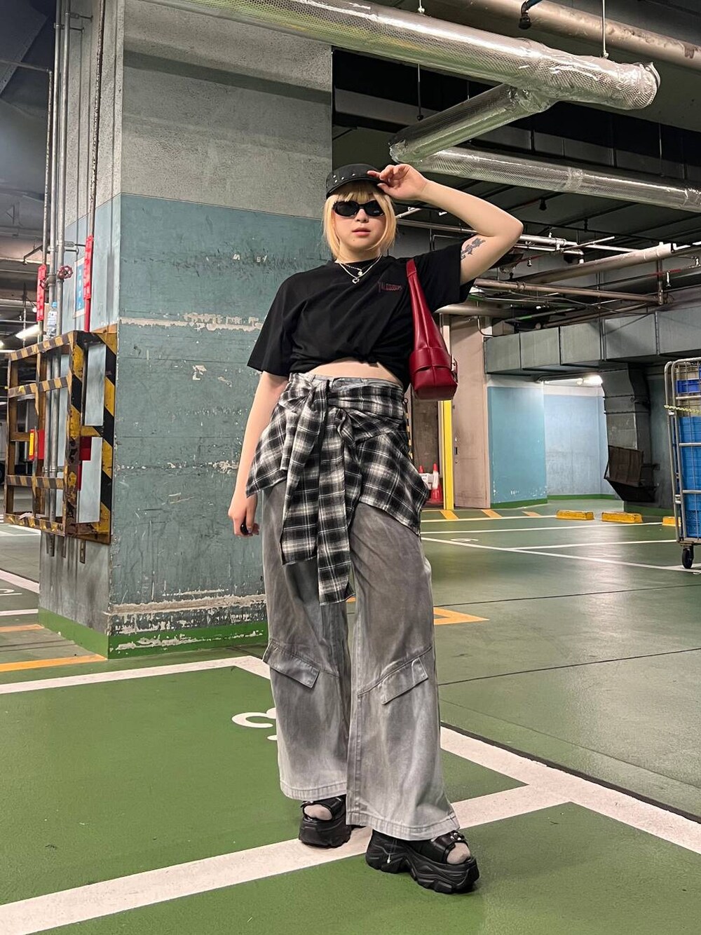 ちぃ。(Andemiu ルミネエスト)のメガネ「ラウンドサングラス」を使ったコーディネート