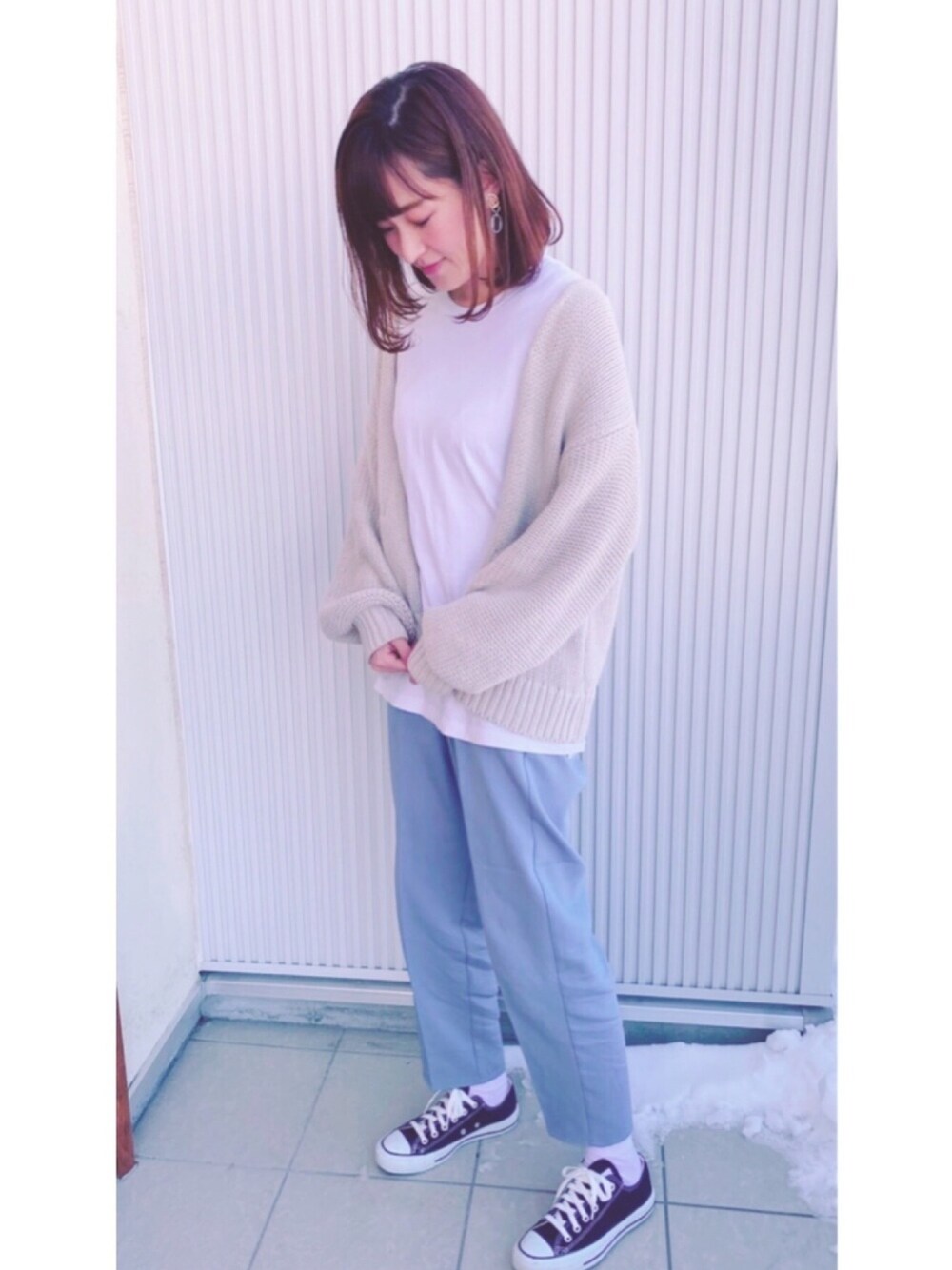 Chikakoのスラックス「【累計販売枚数14万枚突破!】センタープレススラックス カラーテーパードパンツ」を使ったコーディネート