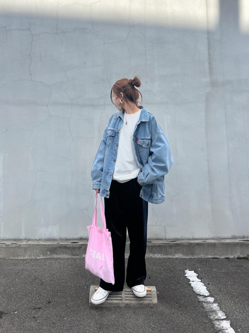 ✔️ ベロア素材のリラックスパンツ💙 光沢感のあるラインパンツかわいい♫ ウエストゴムで 履き心地もよくて楽ちんだよ♡ . 🏷⸒⸒ @bonjoursagan . . . #bonjoursagan #bs_style #ボンサガ#カジュアルコーデ #デニムジャケット#アングリッド #コンバース#30代コーデ #アラフォーコーデ#お洒落さんと繋がりたい #ungrid#converse#outfit#ootd #koreanstyle #koreanfashion