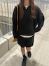 chii___ca♡のセットアップ「Vネックニットセットアップ(chiica select) / 2点セット セーター 長袖 オーバーサイズ ビックシルエット ルーズ ショートパンツ ニットパンツ グレー ブラック 黒 無地」を使ったコーディネート
