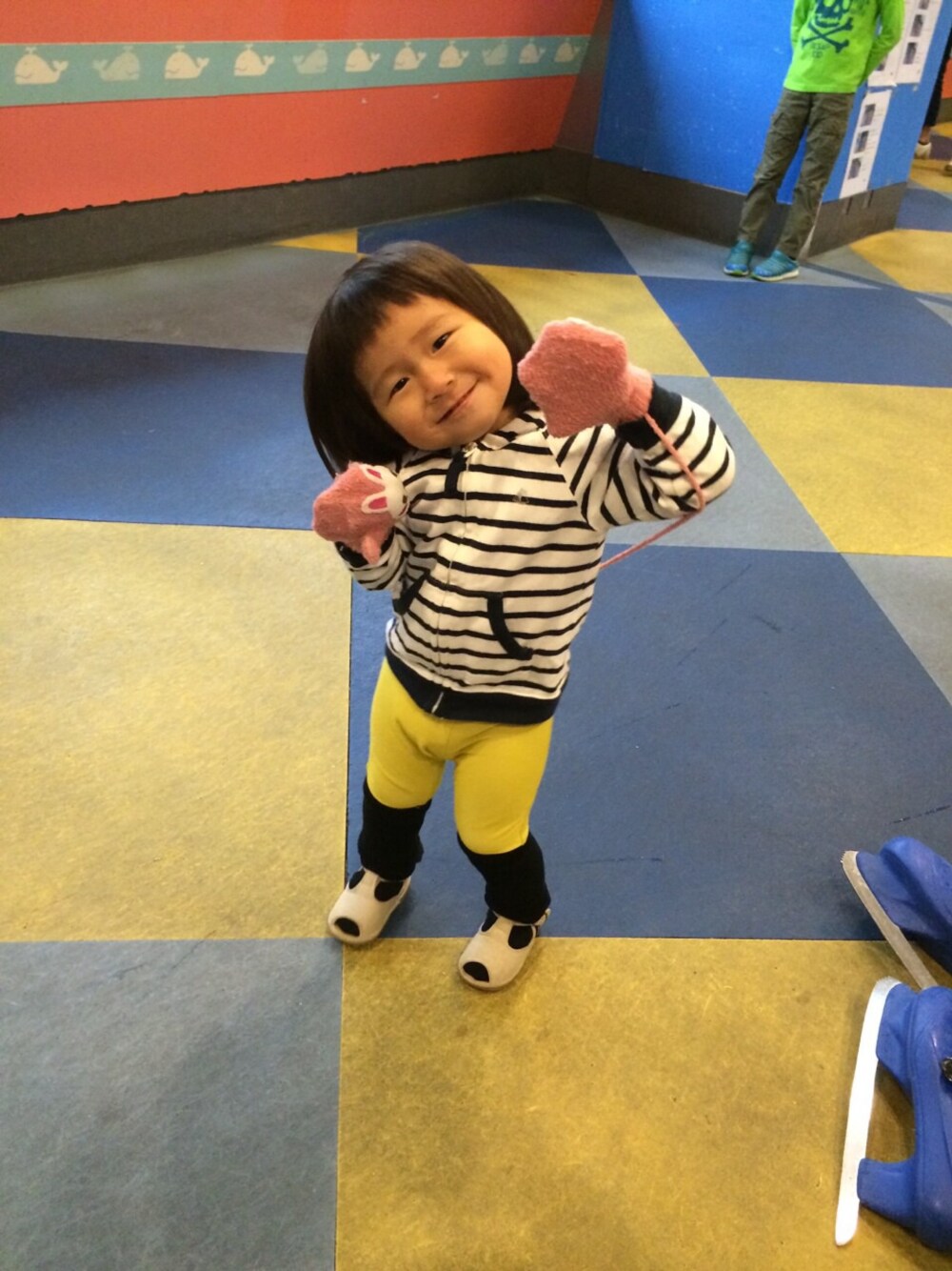 スケート行ったよ♫ 靴下忘れてサンダルできちゃったから パパの靴下はいてレッグウォーマーみたい(笑) レギンス→ZARA