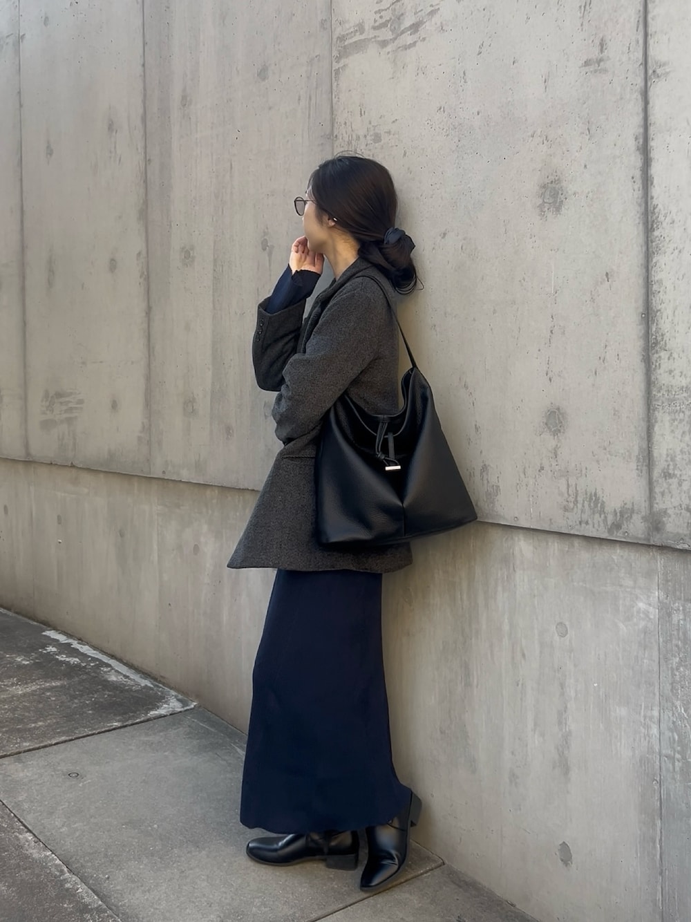 レザーと金具のデザインがきれいめな印象を引き立てます。通勤におすすめ!