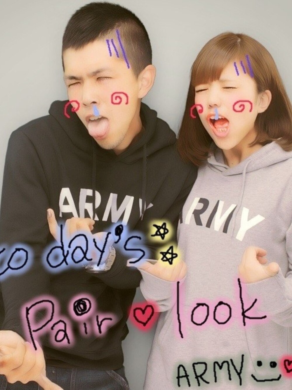 おっさんがプレゼントしてくれた服で ペアルック(´ ˘ `๑)♡ (彼氏のあだ名おっさんですw) 下にショートパンツ合わせて ワンピースにしました〜 んー、一ヶ月以上ぶりのデート ずっと笑ってたなぁ、楽しかった🎶