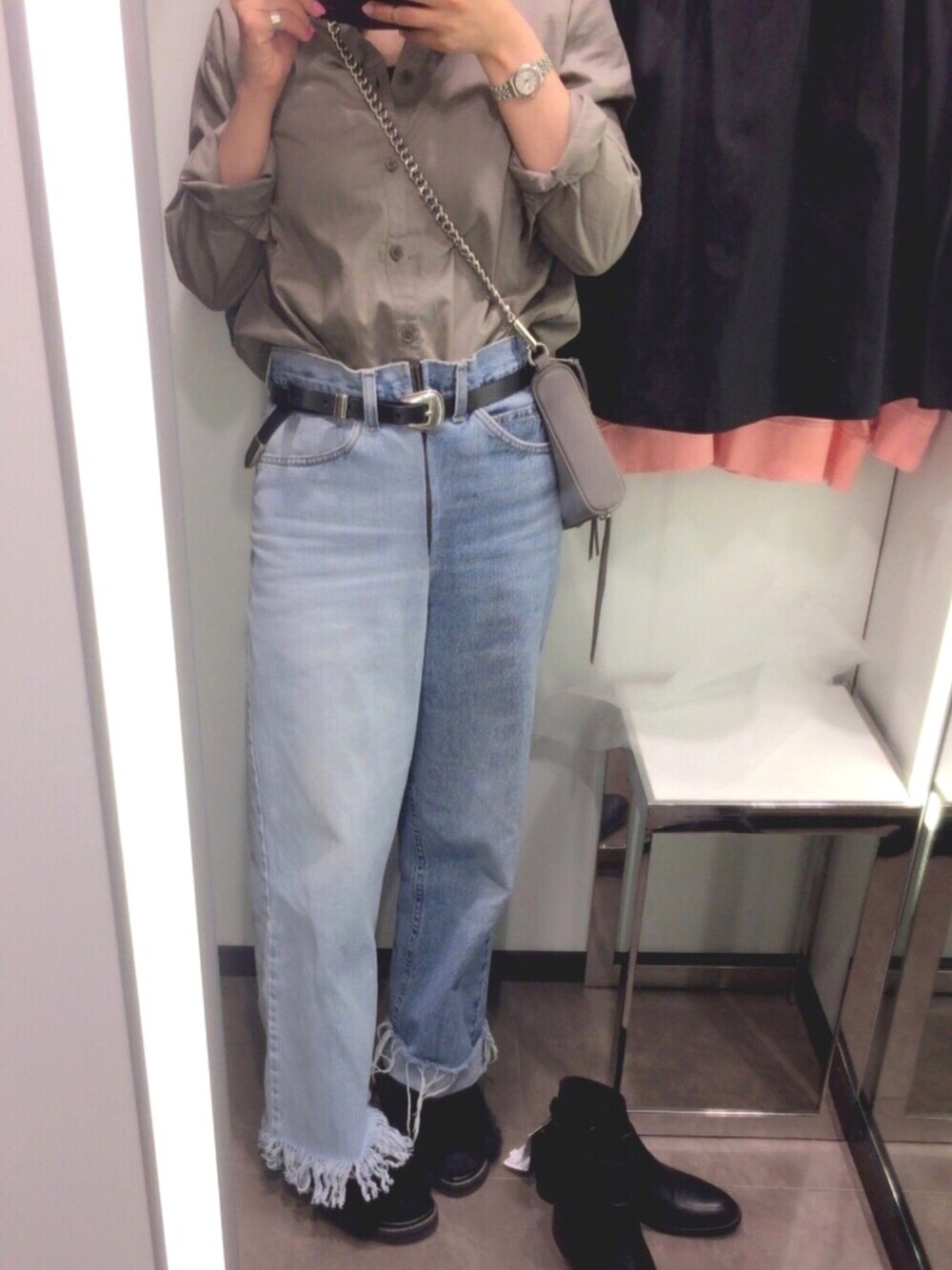 初投稿! 今日あったかいからシャツでも着てみた😃 中はヒートテック🙃 このパンツ太って見えるのが悩みだけど、 かわいいから履いちゃうお気に入りのやつ💘 今日はザラで狙ってたGジャンゲト💜💙 そしてこのブーティもオフシーズンギリギリだけどかわいかったから迷って迷って…🤔🙄 素足で履けばまだ2カ月くらい履けるハズと信じて、 購入🌈 信じてってゆーか履けばいいって話🤣