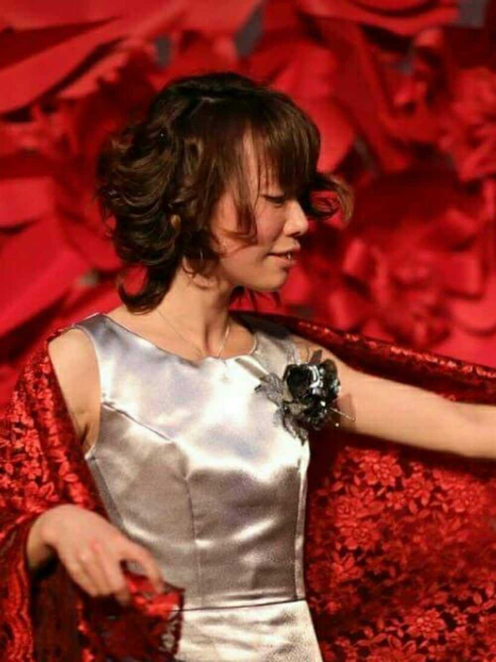 ウエディングパーティー✨ ドレスコードはレッド🌹 全部ハンドメイド🎵🎵 超特急2日で仕上げたので、シンプルだけどw レースのショールが活きるコーデに(*^^*)