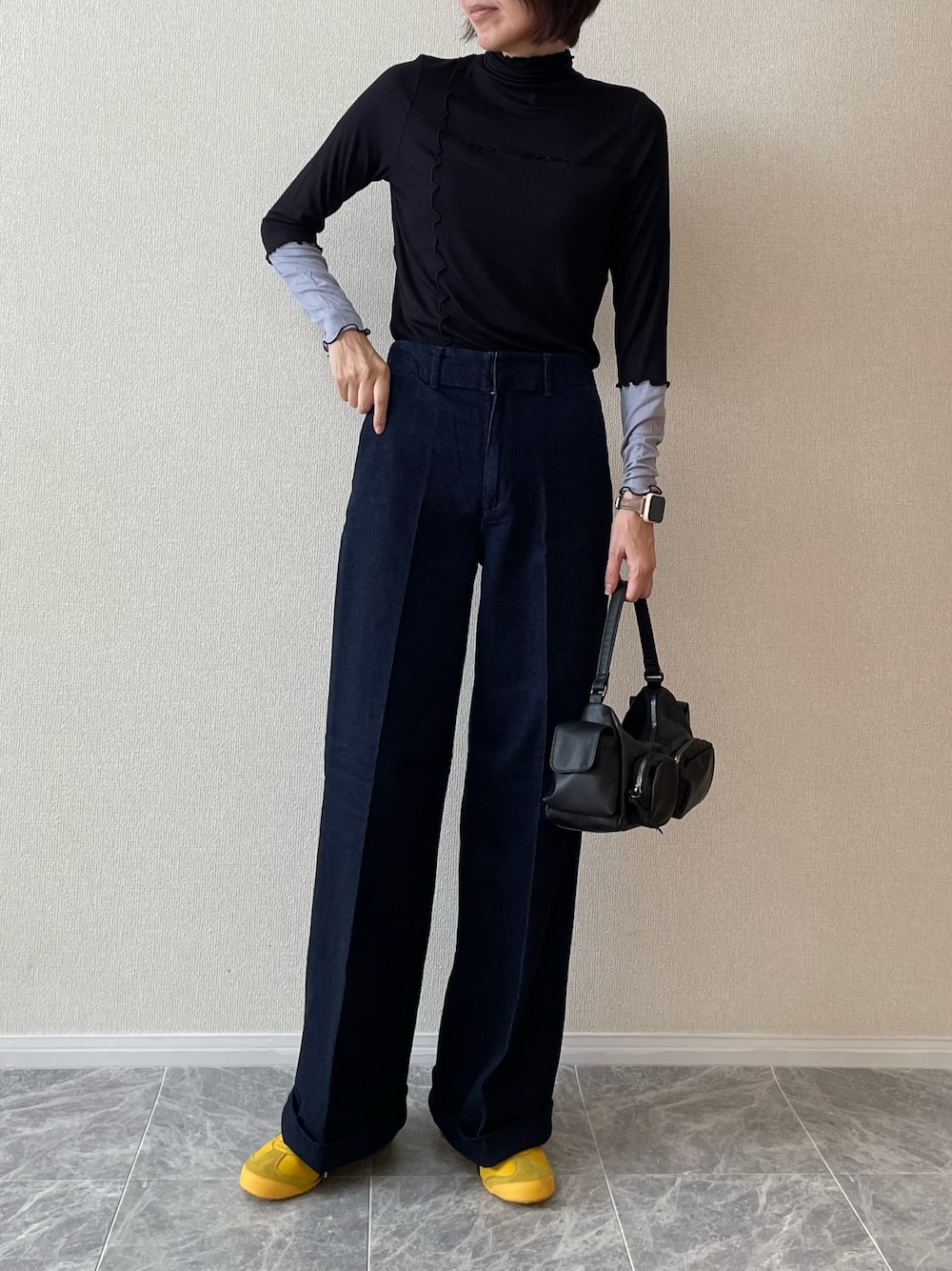 ちいのTシャツ/カットソー「<吸湿発熱> ハイネック 袖配色メローリブインナー/プルオーバー」を使ったコーディネート