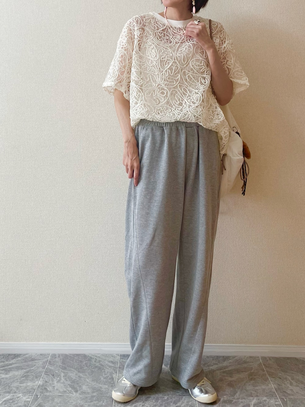 しまむら コードレースルーズTシャツ (521-9266) selectshop_tii シェルピアス&ネックレス いつも見てくれてありがとう☺️ インスタ➡︎@chiikotop