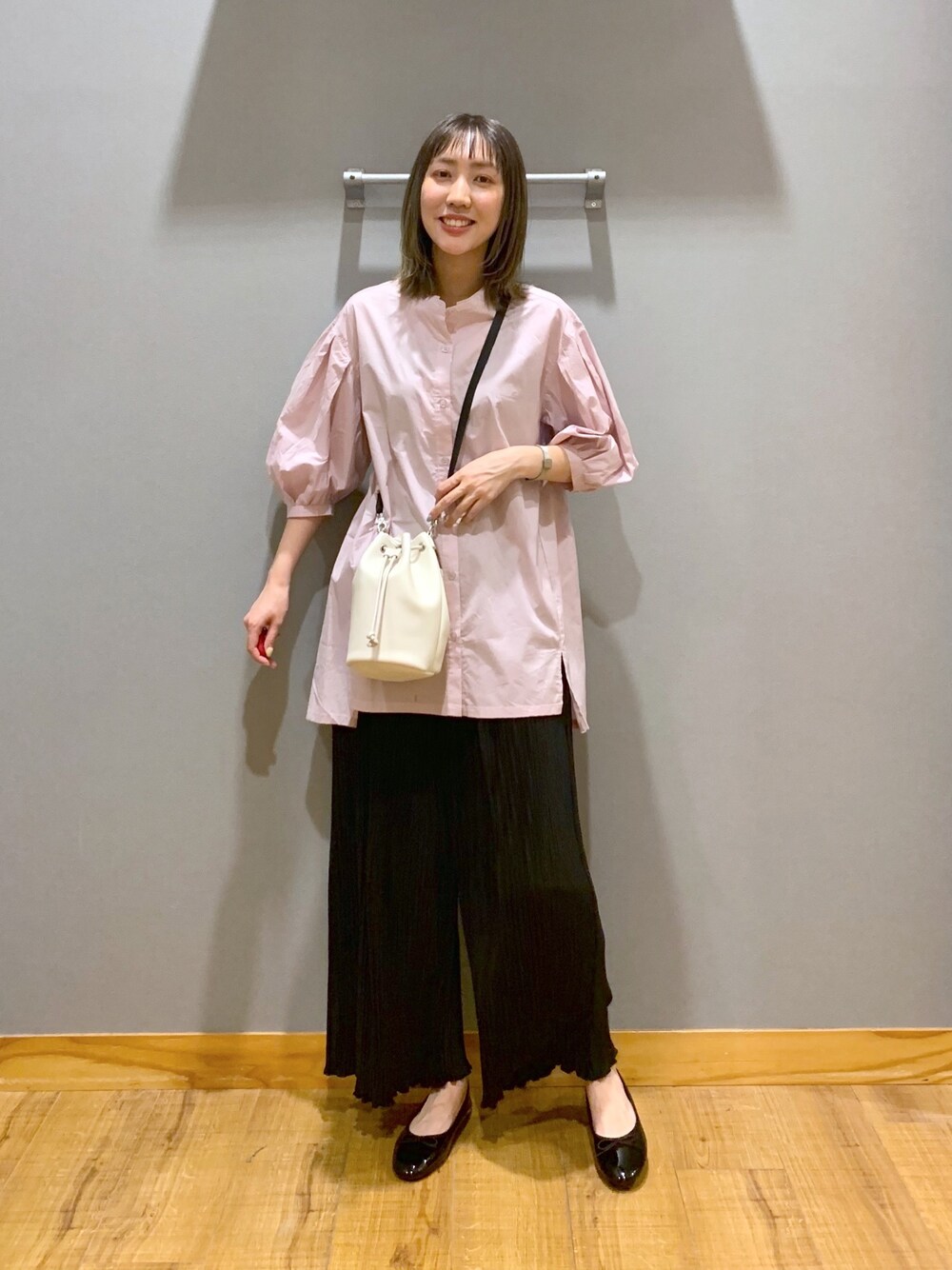 薄ピンクのボリュームシャツってめちゃくちゃかわいい。。! 楽にかわいく、です。