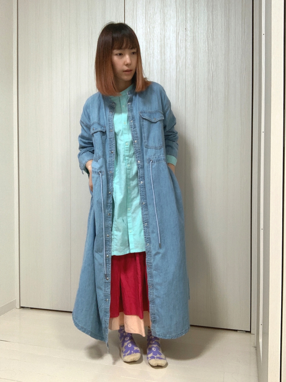 ちぃまゆちゃんのシャツワンピース「ECO DENIM シャツワンピース」を使ったコーディネート