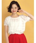 ちぃものトップス「シアーチェックシャーリング半袖プルオーバー」を使ったコーディネート