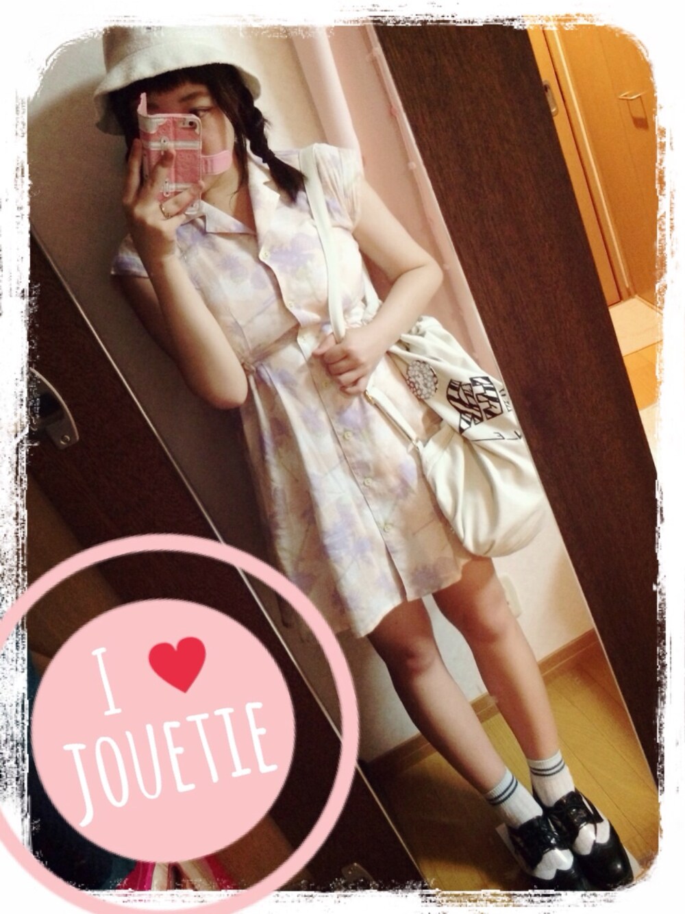 一目惚れしたjouetieのワンピースを主役にコーディネートしました。 パステルな服を着るときは甘くなりすぎないように小物をモノトーンでまとめるのが自分ルール。 彼氏のおさがりのバケットハットに合わせて三つ編み〜。 帽子かぶってると落ち着く。