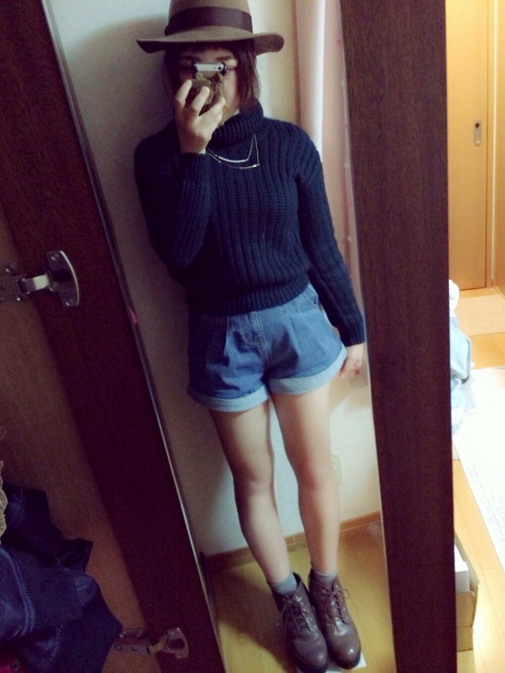 タートルのニットだから足元はすっきり。 最近タートルとかハイネックにはまっています。