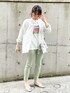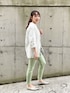 今年のトレンドカラー、グリーンを使った爽やかシャツコーデ。小物はシルバーでまとめてトレンドライクな印象に。