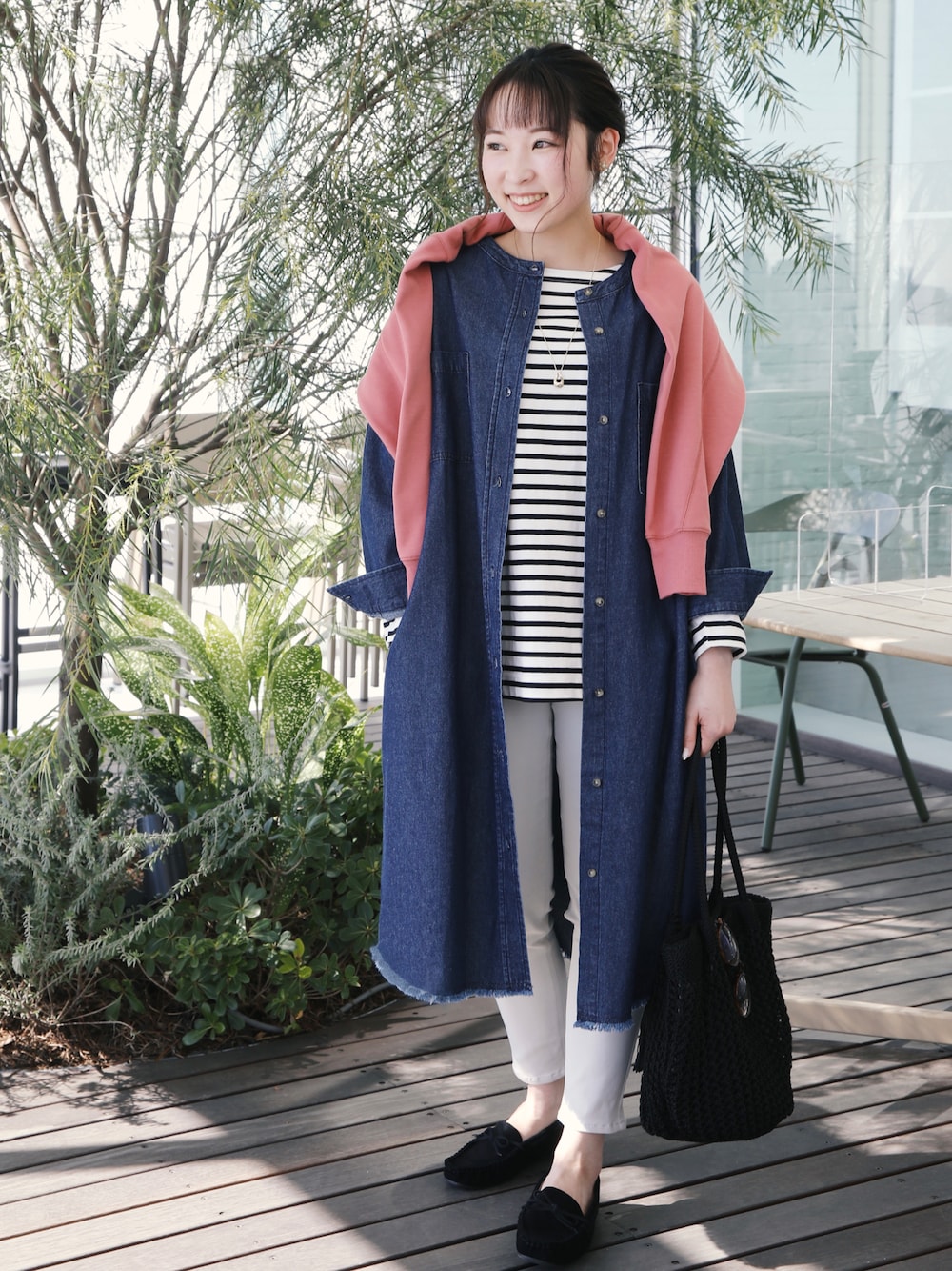 ご覧いただきありがとうございます🌸 ボーダートップス+デニムシャツワンピースの 定番コーデは、カーディガンを肩掛けするだけで 一気にトレンドライクな印象に。 今季おススメのテクニックです♪ 小物はブラックで揃えてスッキリ見せるのもポイント。 【Instagram】 @chi__nk ▶︎my account @shoolarue_official ▶︎ Insta LIVE 毎週木曜20時〜出演中 是非チェックしてくださいねー✨
