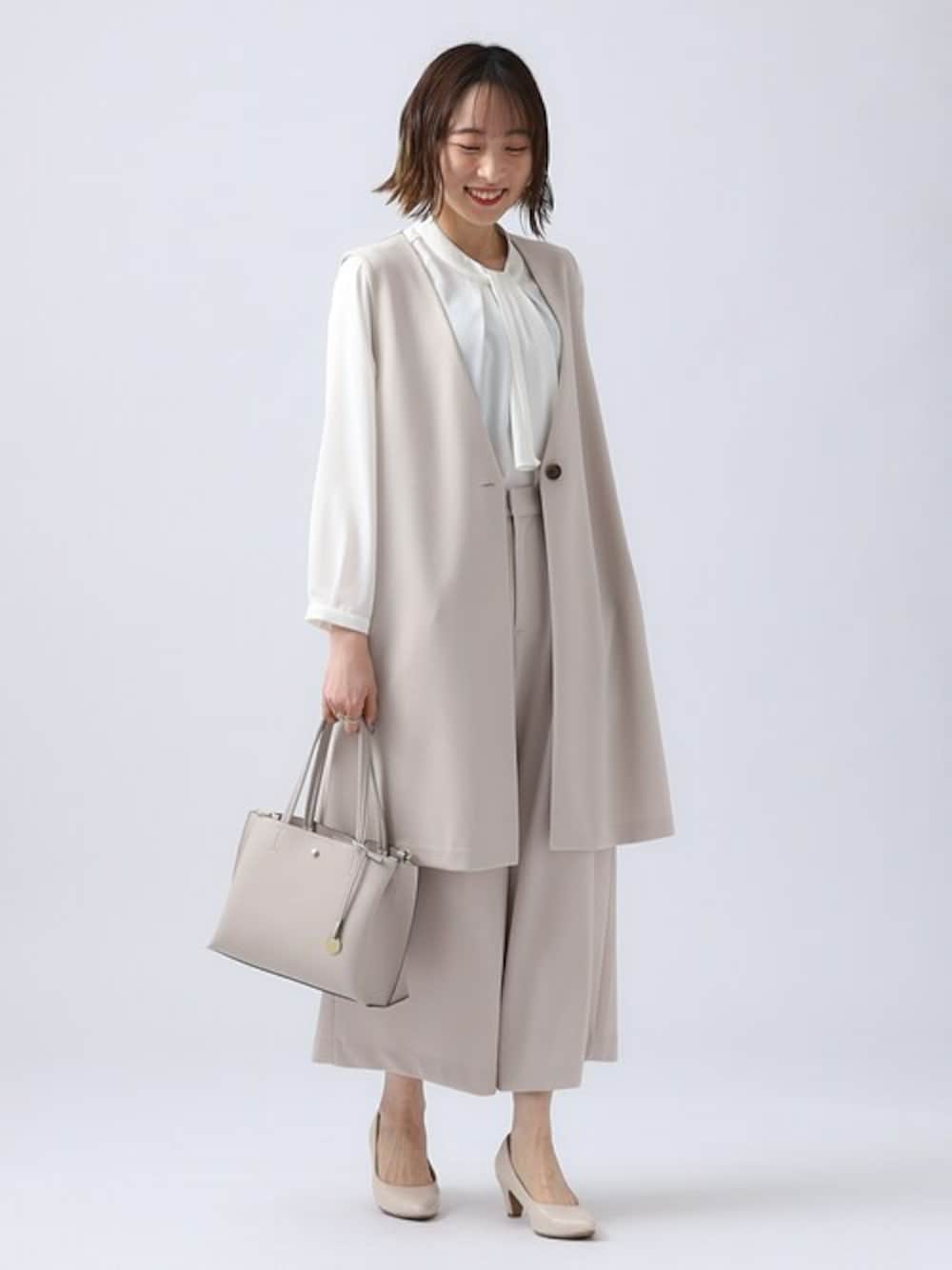 イメージは30代のお仕事コーデ! ジャケットをかっちり着込むのもいいですが、 春先暖かくなった時にジャケットをジレに変えてすこしこなれた印象を与えることができるオフィスコーデをイメージしました。 全てのアイテムをワントーンで統一する事でスッキリと大人っぽい印象に。 【Instagram】 my account▶︎ @chi__nk Insta LIVE▶︎ @shoolarue_official 毎週木曜20時〜出演中 インスタも是非チェックお願いします✨