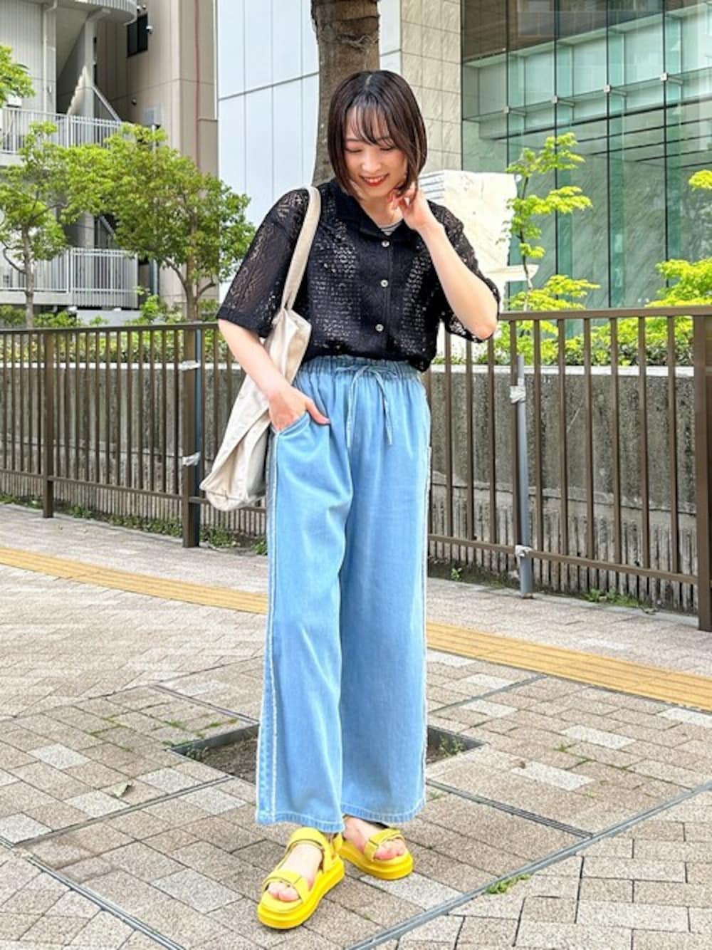 レースシャツのインナーは敢えてボーダーのタンクトップを入れてみました。 さりげなげくのぞくボーダーがこなれ感アップ!周りと差がつくスタイルが楽しめます。 足元は差し色でイエローのスポサンを入れてアクセントに。 【Instagram】 my account▶︎ @chi__nk Insta LIVE▶︎ @shoolarue_official 毎週木曜20時〜出演中 インスタも是非チェックお願いします✨