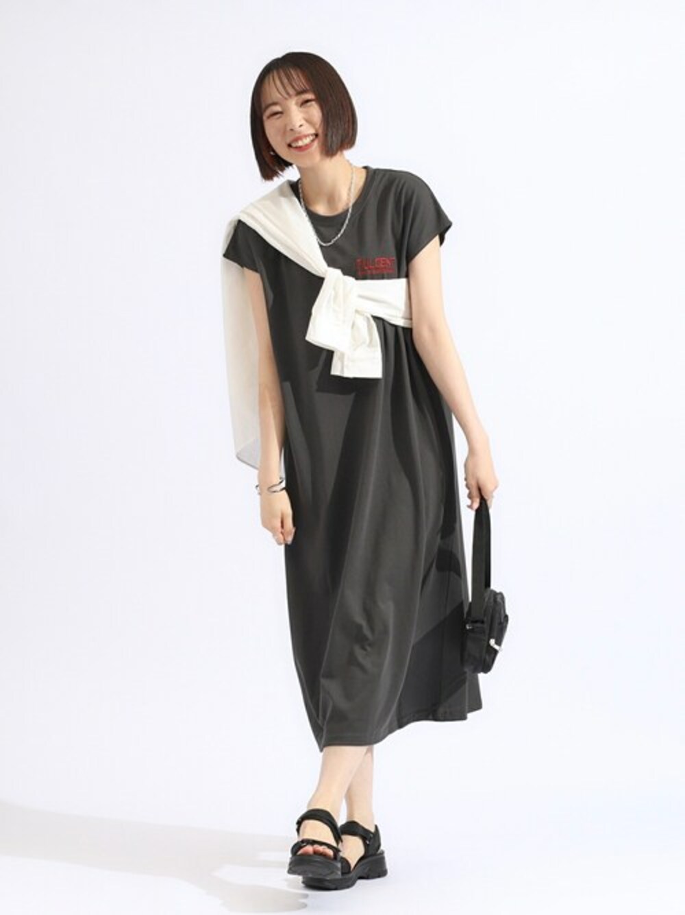 カジュアルなバックプリントのワンピースのコーディネートです。 骨格ウェーブなのでウエスト周りにメリハリをつけたくてシャツをプラスしてたすき掛けをしています。 シャツなしの場合は小ぶりのバッグを斜め掛けしても同じくウエストマークに近い効果でシルエットにメリハリをつけることができます。 【Instagram】 my account▶︎ @chi__nk Insta LIVE▶︎ @shoolarue_official 毎週木曜20時〜出演中 インスタも是非チェックお願いします✨