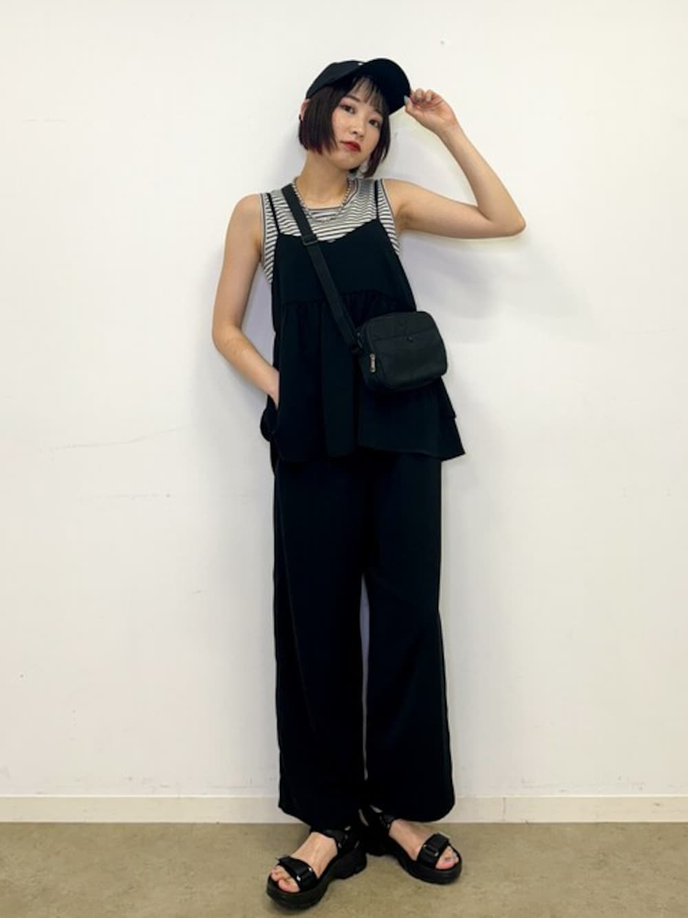 黒でまとめたモノトーンコーデ。 セットアップのインナーはボーダーのタンクトップでカジュアルかつヘルシーに。 小物もキャップやスポサンなどカジュアルでまとめたトレンド感あるミックスコーデです。 【Instagram】 my account▶︎ @chi__nk Insta LIVE▶︎ @shoolarue_official 毎週木曜20時〜出演中 インスタも是非チェックお願いします✨