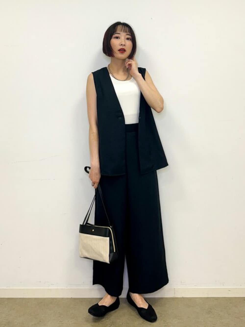 モノトーンでシックにまとめたセットアップコーディネート。 オフィスカジュアルにもおすすめです。 インナーはすっきりとタンクトップにするのがこなれ見えのポイントです。 【Instagram】 my account▶︎ @chi__nk Insta LIVE▶︎ @shoolarue_official 毎週木曜20時〜出演中 インスタも是非チェックお願いします✨
