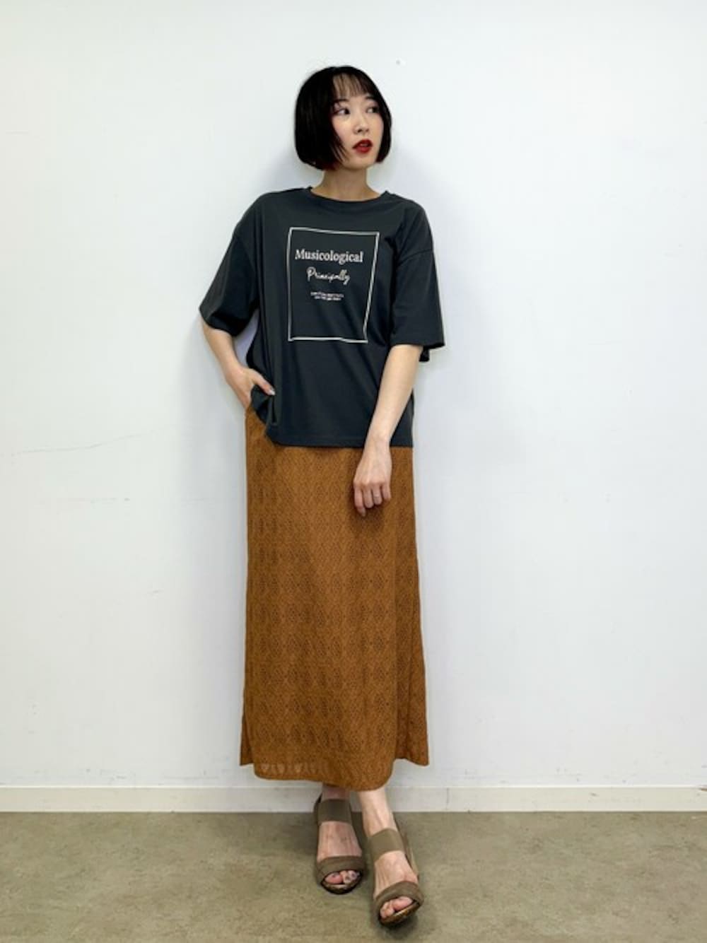 人気のチャコールグレーのTシャツに、秋を意識したキャメルのスカートを合わせました。 すっきりとしたナロースカートの縦ラインと、着丈が長すぎないゆるTシャツのバランスがちょうどよく、アウトスタイルが苦手な骨格ウェーブでも着こなせました。 【Instagram】 my account▶︎ @chi__nk Insta LIVE▶︎ @shoolarue_official 毎週木曜20時〜出演中 インスタも是非チェックお願いします✨