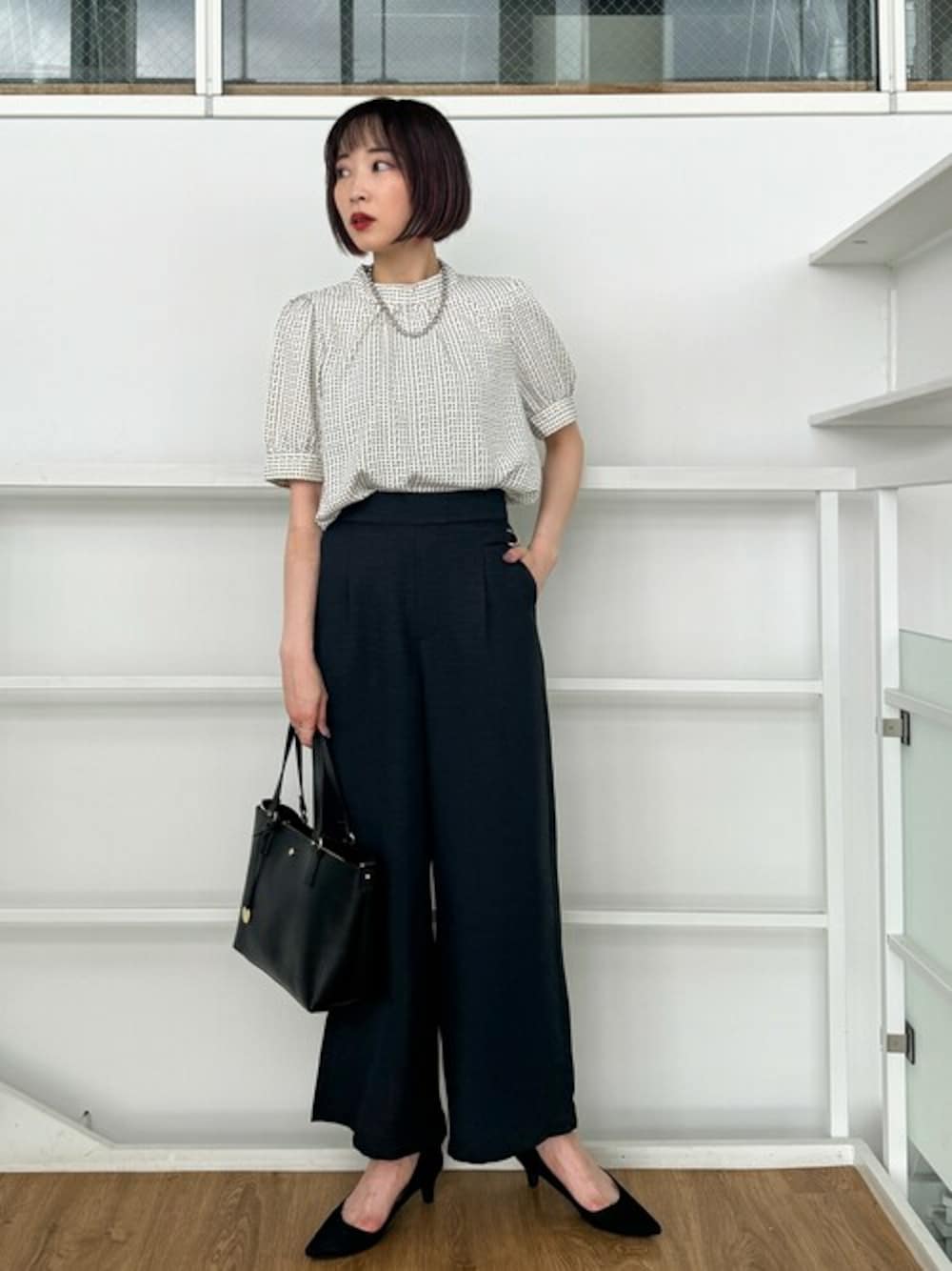 夏の終わりにまだまだ涼しげに着こなしたい、オフィスコーデ。 ボトムはワイドパンツなので、ブラウスはすっきりタックインするとバランスよく着こなすことができます。 【Instagram】 my account▶︎ @chi__nk Insta LIVE▶︎ @shoolarue_official 毎週木曜20時〜出演中 インスタも是非チェックお願いします✨