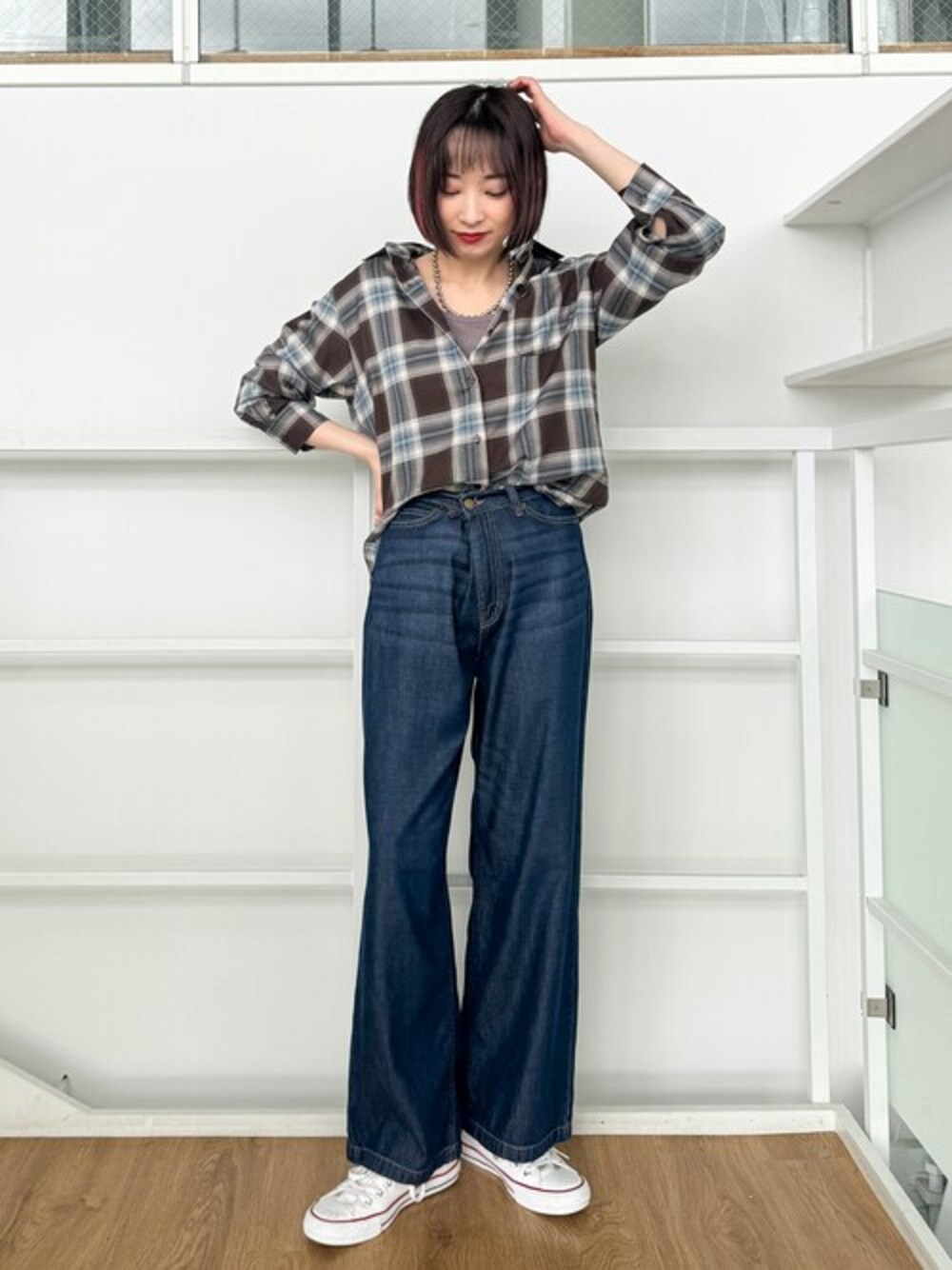 チェックシャツをタックインしてトップス風に着こなしたスタイルです。 ボタンを少し開けて、袖もプッシュアップして抜け感を出すのがポイント。 ※スニーカーはスタッフ私物です 【Instagram】 my account▶︎ @chi__nk Insta LIVE▶︎ @shoolarue_official 毎週木曜20時〜出演中 インスタも是非チェックお願いします✨
