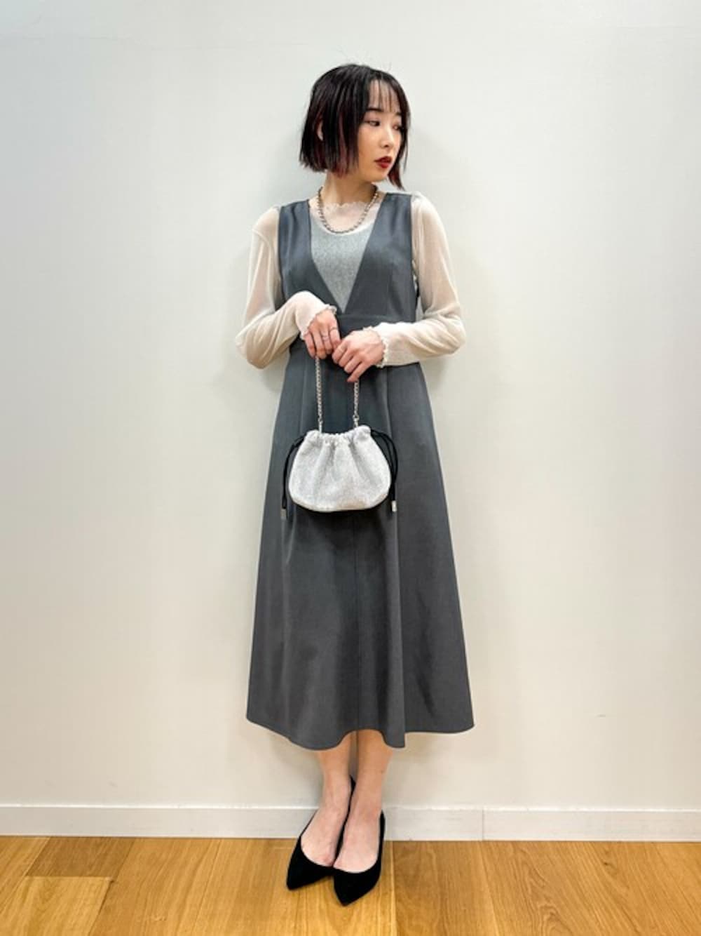 グレーのジャンドレで大人っぽくかつ女性らしい印象を意識したきれいめスタイルに。 【Instagram】 my account▶︎ @chi__nk Insta LIVE▶︎ @shoolarue_official 毎週木曜20時〜出演中 インスタも是非チェックお願いします✨