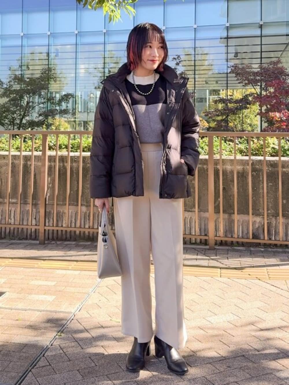 モノトーンでまとめたきれいめカジュアルなニットスタイル。 シルバーのバッグでトレンドを取り入れてコーデのアクセントに。 【Instagram】 my account▶︎ @chi__nk Insta LIVE▶︎ @shoolarue_official 毎週木曜20時〜出演中 インスタも是非チェックお願いします✨