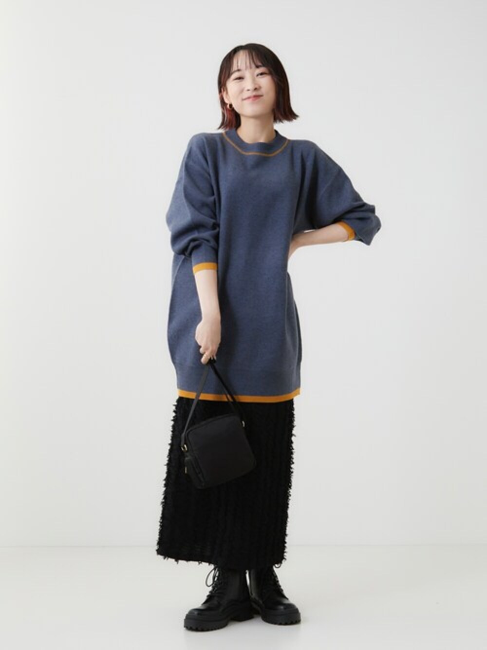 ネイビーとマスタードのカラー使いがこなれた印象を与えてくれるニットチュニック。 ボトムは落ち着いた黒を合わせて、フリンジの素材でトレンド感をプラスしました。 ※バッグは参考商品です. 【Instagram】 my account▶︎ @chi__nk Insta LIVE▶︎ @shoolarue_official 毎週木曜20時〜出演中 インスタも是非チェックお願いします✨