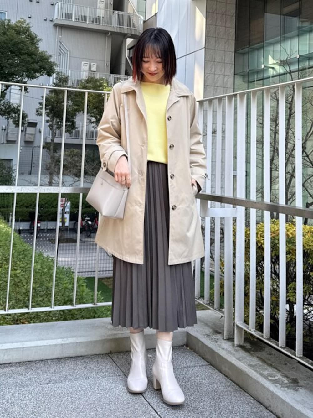春の装いを感じられるイエローのニットを使った先取りコーデ。 ステンカラーコートは着丈が膝上で長すぎないので、スカートと合わせてもバランスよく着られます。 【Instagram】 my account▶︎ @chi__nk Insta LIVE▶︎ @shoolarue_official 毎週木曜20時〜出演中 インスタも是非チェックお願いします✨