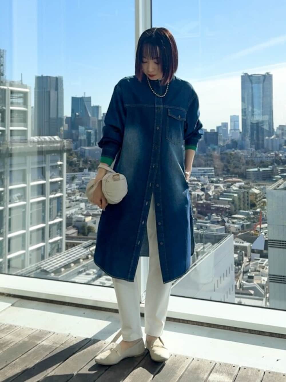デニムシャツワンピースの上半分くらいのボタンを閉じて裾から白のパンツを覗かせることですっきり見えにこだわりました。 グリーンのカーディガンを中に着て袖口からチラ見せすることでこなれ感をアップ。 ※アクセサリーはスタッフ私物です 【Instagram】 my account▶︎ @chi__nk Insta LIVE▶︎ @shoolarue_official 毎週木曜20時〜出演中 インスタも是非チェックお願いします✨