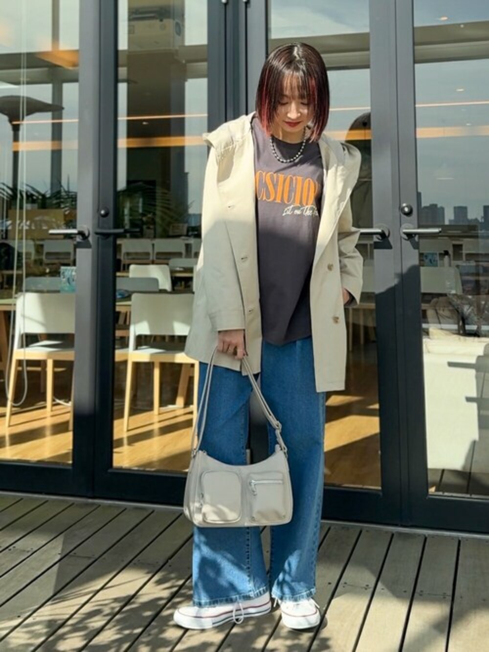 【スタイリングポイント】 ゆるっとロンTをアウトスタイルでデニムと合わせた上に少しだけきちんと見えするテントラインのアウターを羽織った大人なカジュアルスタイル。 ※アクセサリー、シューズはスタッフ私物です 【Instagram】 my account▶︎ @chi__nk Insta LIVE▶︎ @shoolarue_official 毎週木曜20時〜出演中 インスタも是非チェックお願いします✨