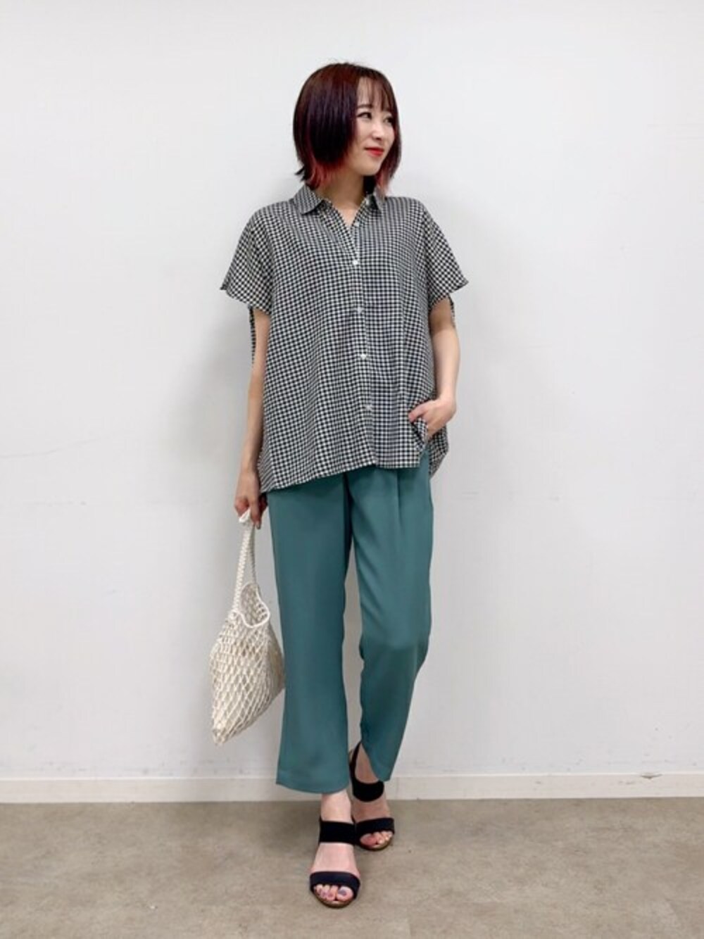 【スタイリングポイント】 女性らしいギンガムチェックのシャツブラウスは着丈が長めなのでインしない時はテーパードパンツを合わせるとコーデのバランスが整います。 ※アクセサリーはスタッフ私物です 【Instagram】 my account▶︎ @chi__nk Insta LIVE▶︎ @shoolarue_official 毎週木曜20時〜出演中 インスタも是非チェックお願いします✨